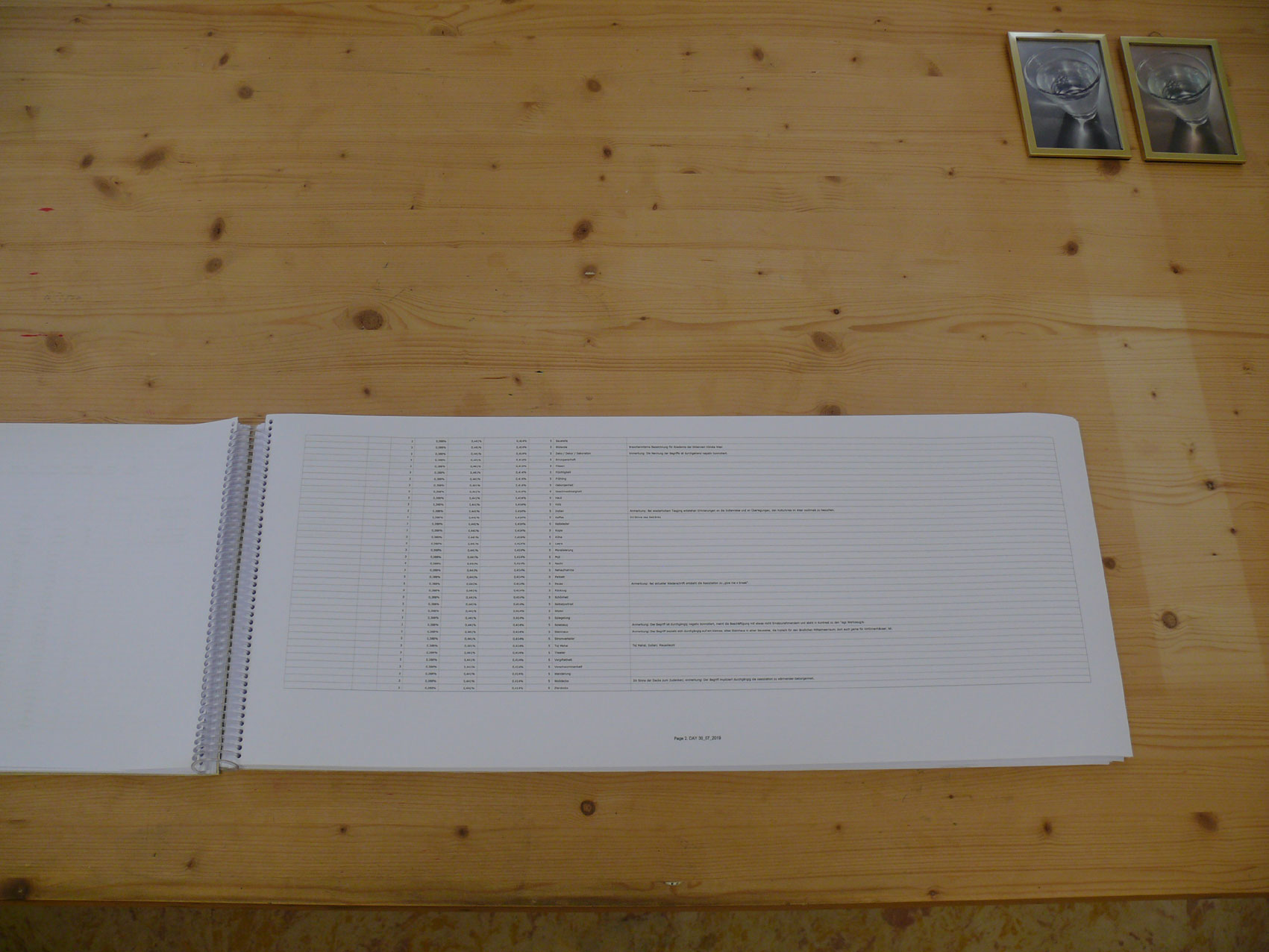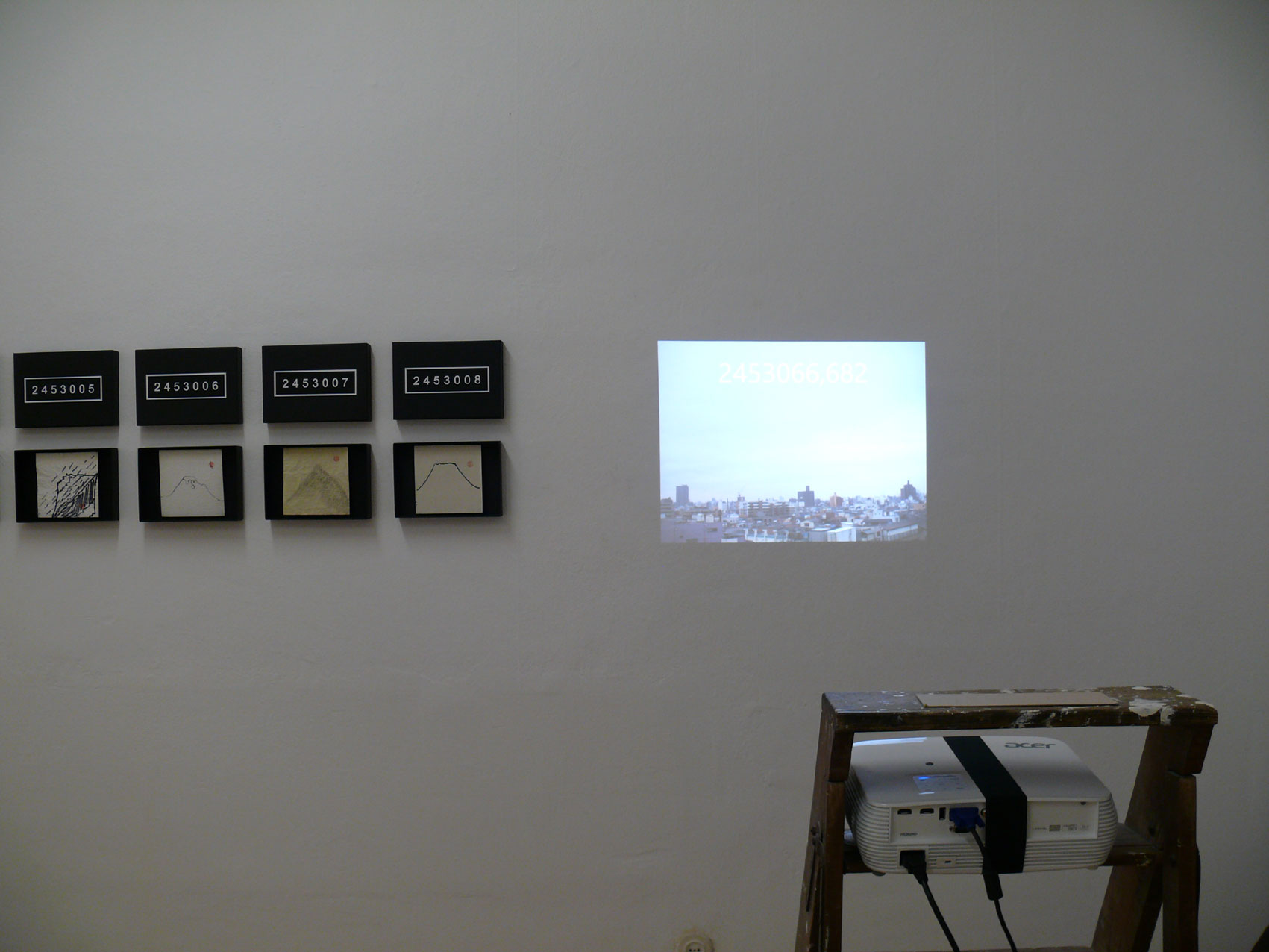 unter Betrachtung von Arno Schmidts Ausführungen zum Julianischen Tageszählsystem und der verbreiteten Neigung, sich auf persönlich bedeutsame Personen oder Begebenheiten unter Verknüpfung mit einer Zeitmessung zu beziehen, entstanden tägliche Text- und Bildmanifestationen, die sich bewusst jeglicher Zuordnung zu entziehen versuchten. Nun konzeptionell und formal On Kawaras date paintings folgend, erprobt das installative Setting inklusive einer experimentellen Videokompilation Fragen zu Auflösung über die Gleichheit in der Leere.