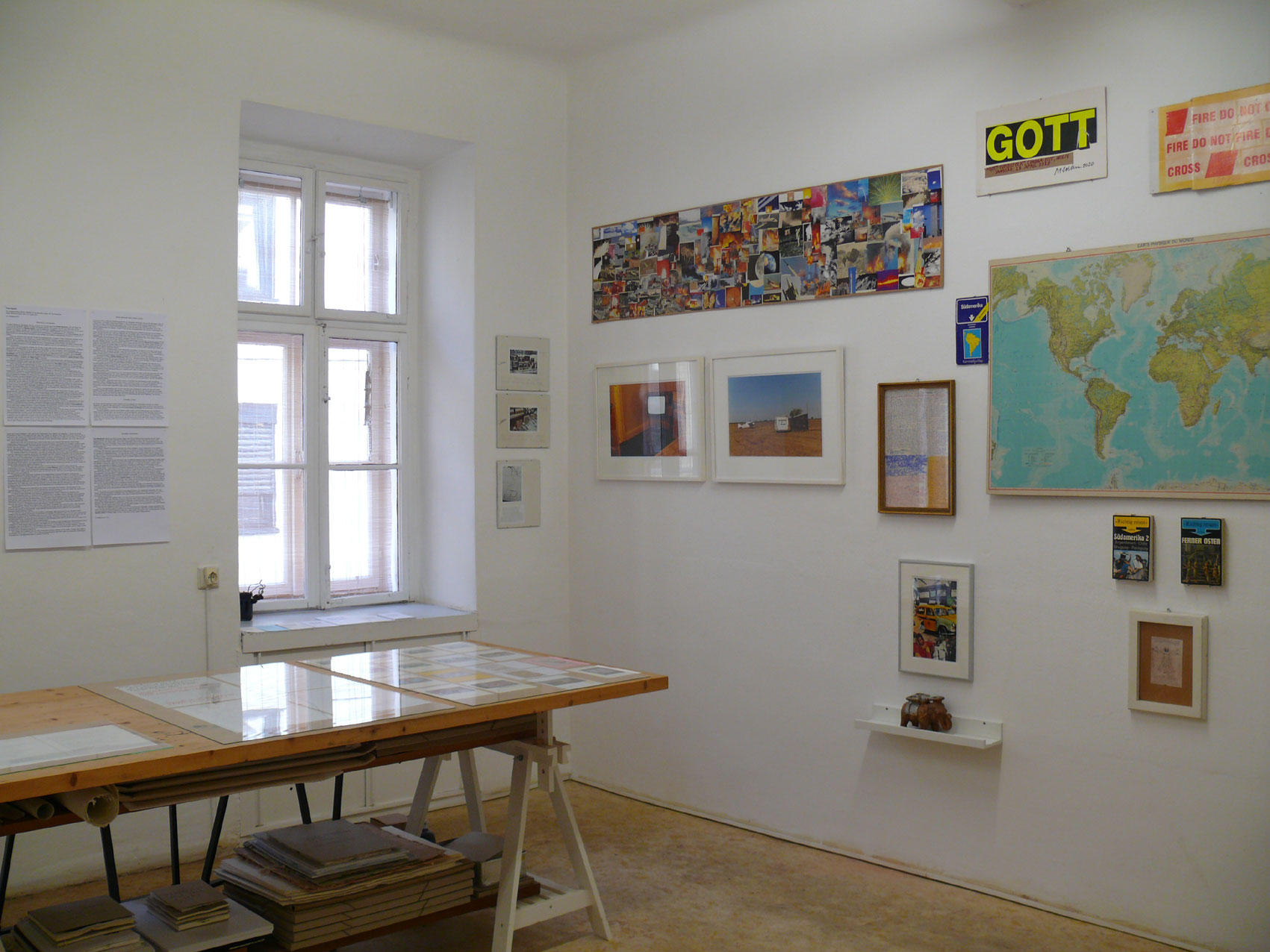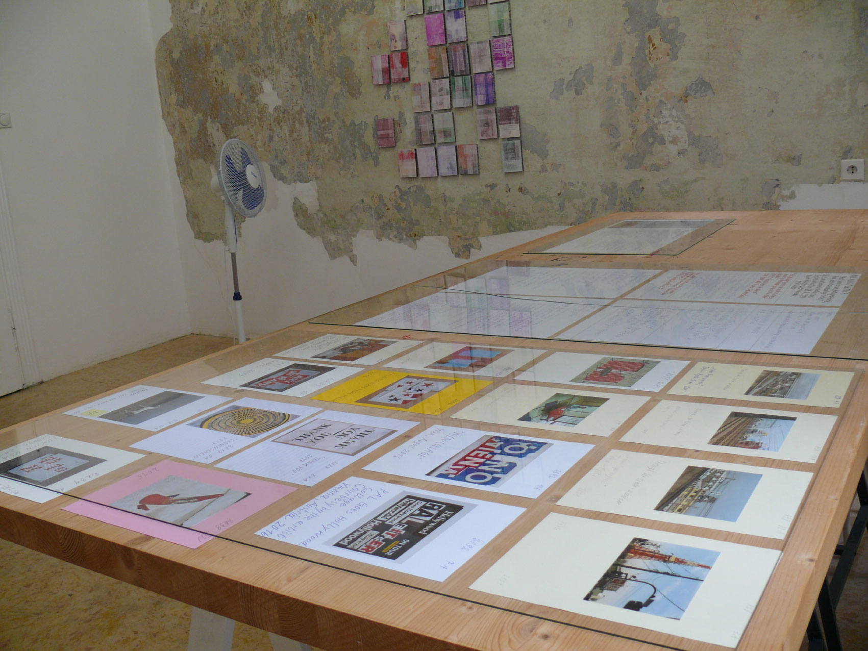 Die aktuelle Ausstellungswand im Studio Kleinlercher ist eine Zeitkapsel, ein multimediales Dokument von Leitners Tätigkeiten, ein gefrorenes Bild seines Lebens im Verlauf des Erwachsenseins. Wie komplett das Bild ist, darauf kommt es nicht an: kein Bild ist ja jemals vollständig. Der Anthropologe Claude Levi-Strauss hat einmal gesagt: »Wenig Geschichte ist besser als gar keine«.