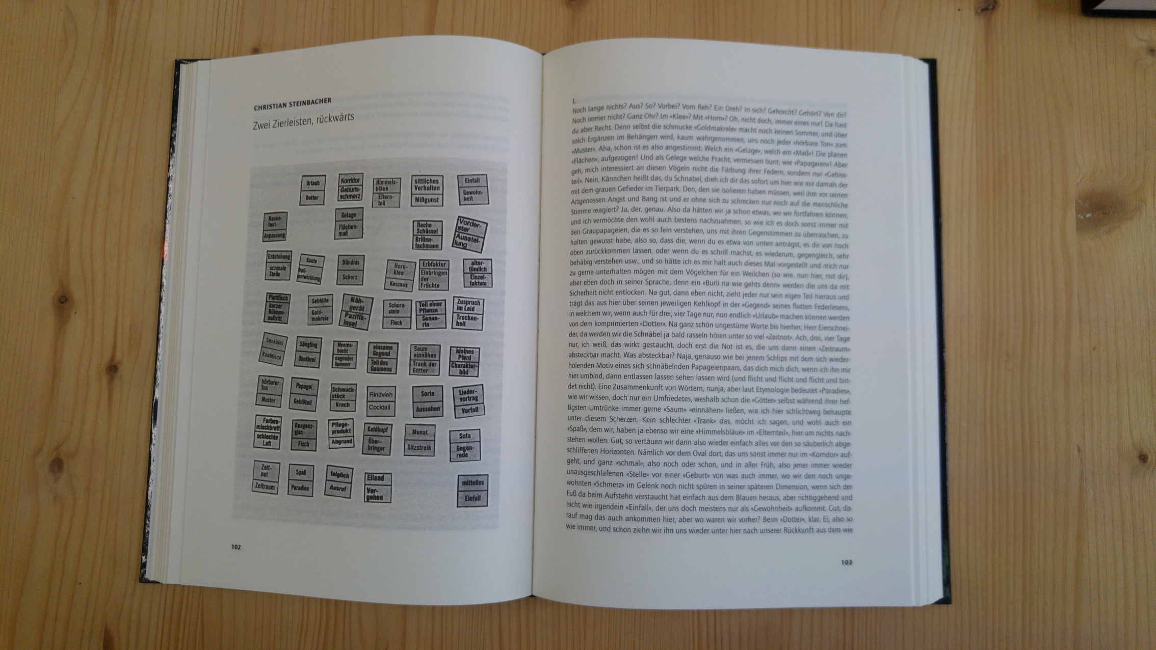 Kreuzworträtsel sind alles andere als poesieverdächtig, doch wer Christian Steinbachers spielerische und stets form- und materialbewusst agierende poetische Arbeit kennt, wird hier einige Anknüpfungspunkte finden: Es handelt sich um einen Text mit offenem Ausgang (man kann bekanntlich an der Lösung scheitern oder die Lust verlieren); eigentlich ist es eine Spielanleitung fü einen Text, der wiederum keiner übergreifenden syntaktischen oder semantischen Logik folgt. Sinneinheiten gibt es hier nur auf der Binnenebene und es gibt viele Leerstellen, die die „Leser“ eines solchen Rätsels zu dessen potentiellen Mitautoren machen. Sie sind dazu angehalten, Wörter anhand von Buchstabenfolgen als die „richtigen“ ausfindig zu machen, zu diesem Zweck müssen sie kombinieren, Buchstaben zählen, Wörter ausprobieren. Zudem gibt es hier keine vorgegebene lineare Leserichtung, man probiert und buchstabiert kreuz und quer, wie es eben kommt, der Text gleicht letztlich mehr einem Parcours oder einer Konstellation. Alle diese Aspekte wurden in den sprachbewussten und sprachexperimentellen modernen Literaturrichtungen auf die eine oder andere Art aufgegriffen und thematisiert.