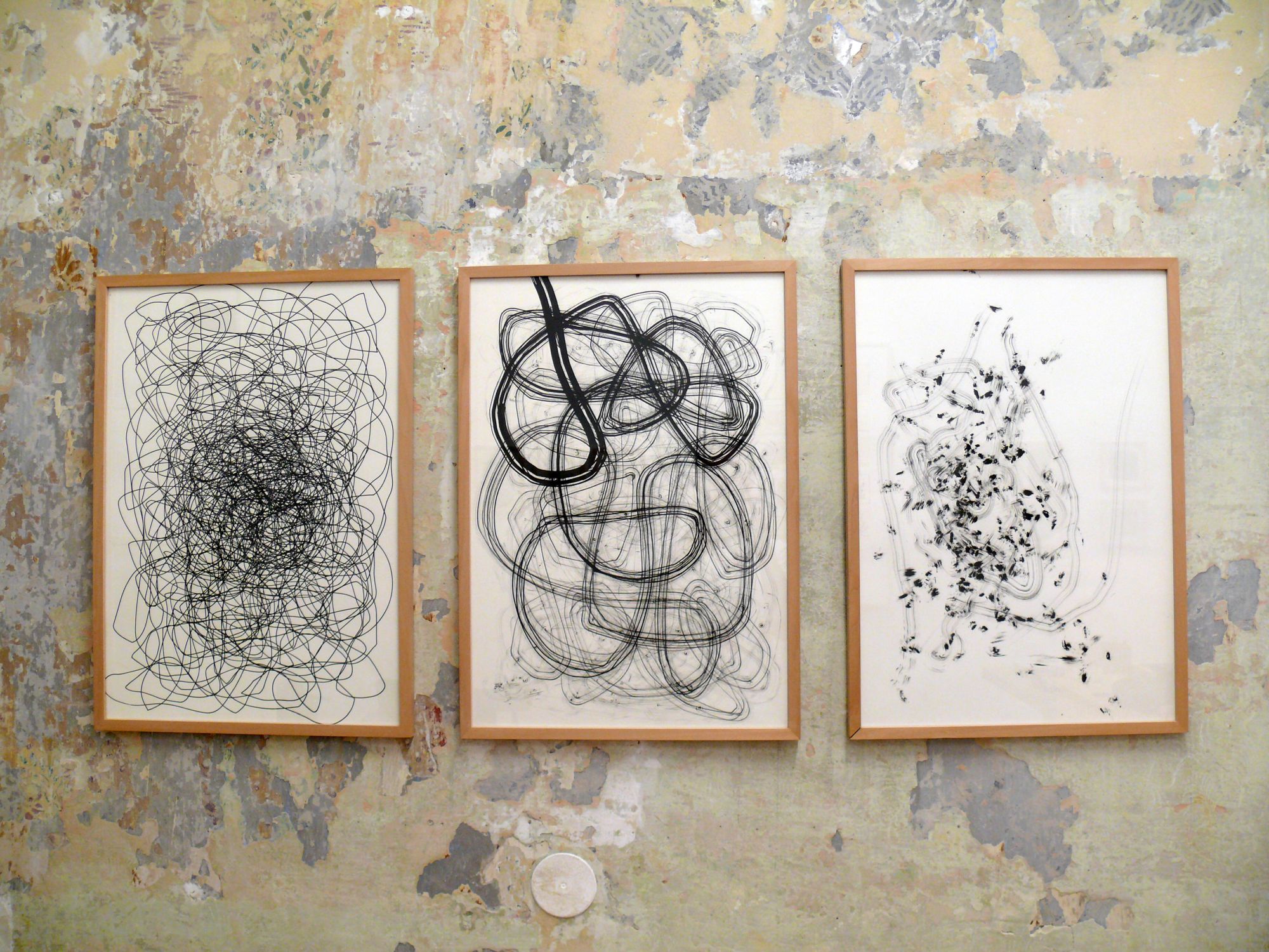 Die Zeichnungen sind meiner Serie "etymdrawings" zuzuordnen, die in ihrem Entstehungsprozess und auch auf der Wahrnehmungsebene etwas schwer Definierbares vielleicht sogar rhizomatisches beinhalten.