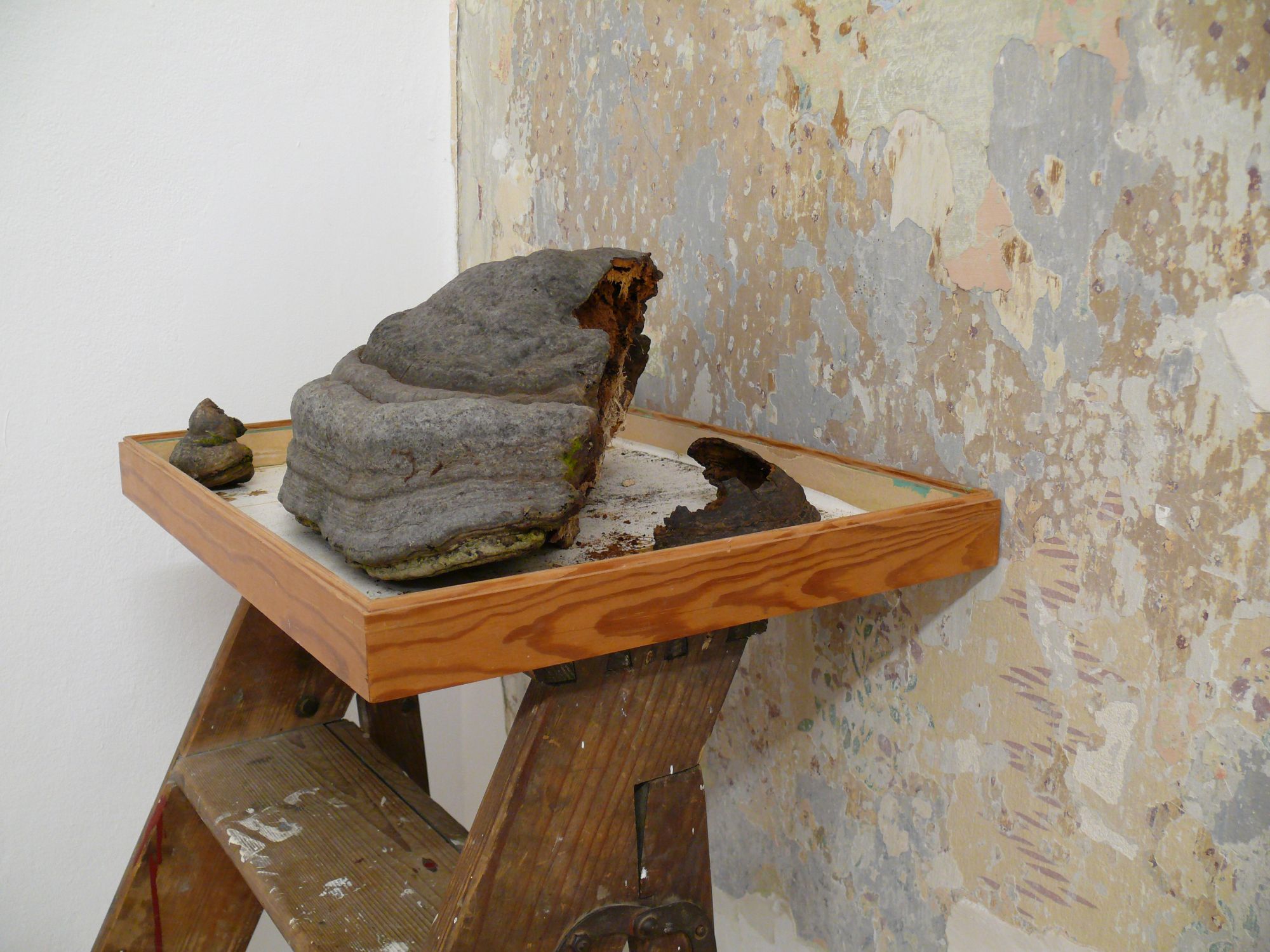 Sie sehen hier eine Auswahl meiner Baumschwammsammlung als installative Inszenierung. Es handelt sich in erster Linie um Zunderschwämme.